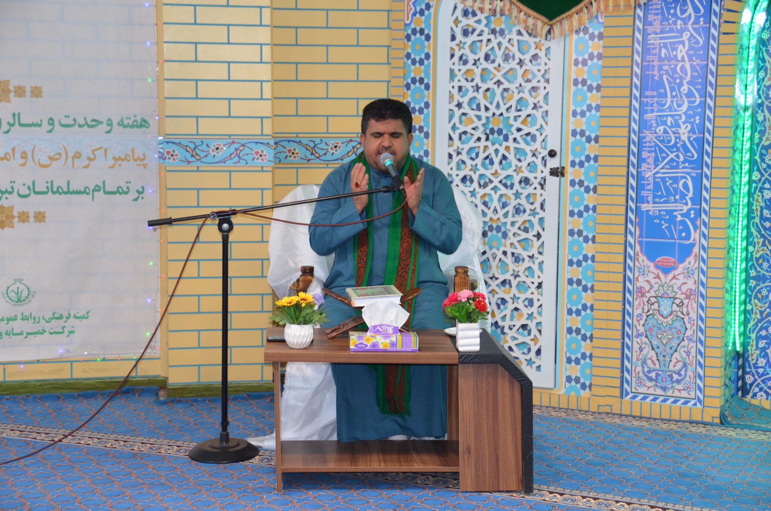 سیدکریم موسوی، مبتهل بینالمللی و قاری نام آشنای کشورمان، به مناسبت هفته وحدت اسلامی در حسینیه سیدالشهداء شرکت خمیرمایه و الکل رازی به اجرای قطعهای در مدح و بیان خصایص پیامبر اعظم (ص) و خاندان مطهر ایشان پرداخت.